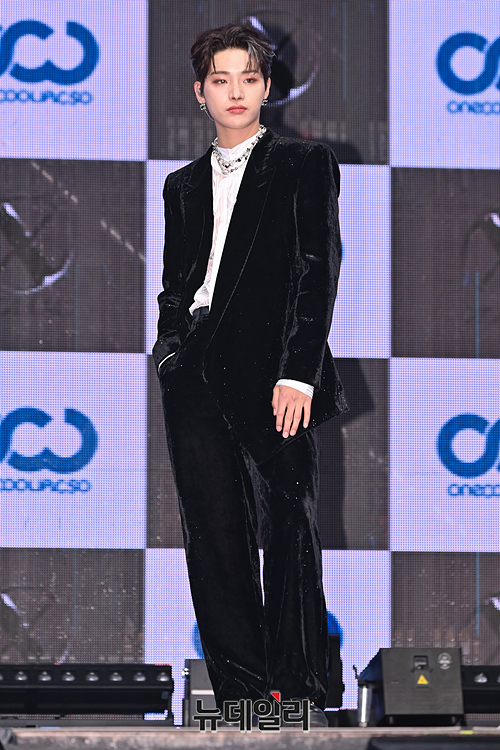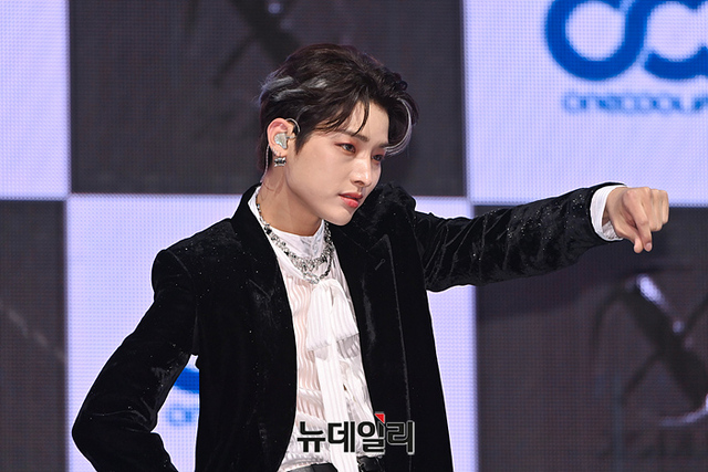 신인 아이돌그룹 소디엑(XODIAC) 렉스가 25일 오후 서울 광진구 예스24라이브홀에서 열린 데뷔 기념 쇼케이스에서 포토타임을 갖고 있다.