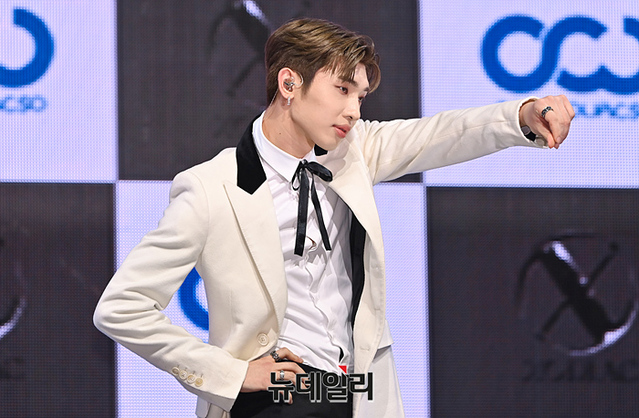 신인 아이돌그룹 소디엑(XODIAC) 다빈이 25일 오후 서울 광진구 예스24라이브홀에서 열린 데뷔 기념 쇼케이스에서 포토타임을 갖고 있다.