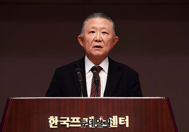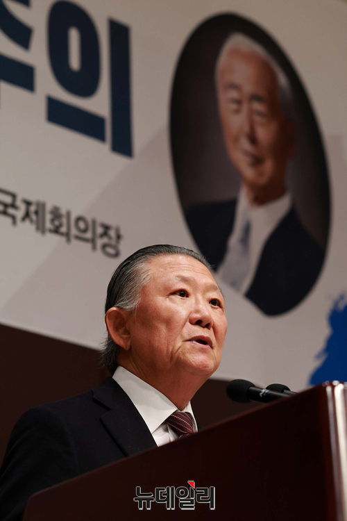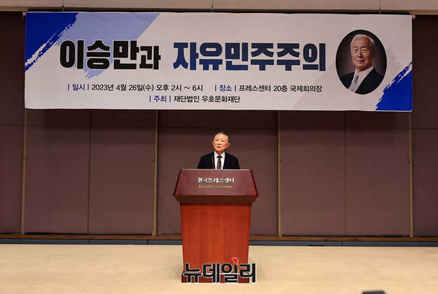 신철식 우호문화재단 이사장이 26일 오후 서울 중구 한국프레스센터에서 '이승만과 자유민주주의' 주제로 열린 우호문화재단 학술회의에서 인사말을 하고 있다.