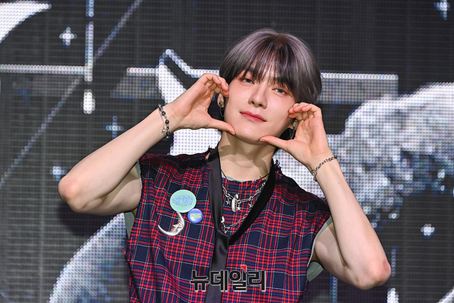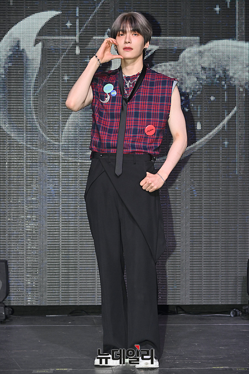 아이돌그룹 이펙스(EPEX) 위시가 26일 오후 서울 마포구 신한pLay 스퀘어에서 열린 5번째 앨범 '사랑의 서 챕터 2.성장통' 발매기념 쇼케이스에서 포토타임을 갖고 있다.
