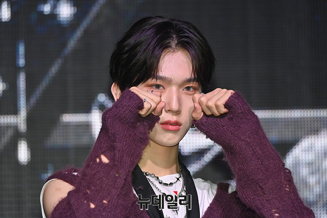 아이돌그룹 이펙스(EPEX) 백승이 26일 오후 서울 마포구 신한pLay 스퀘어에서 열린 5번째 앨범 '사랑의 서 챕터 2.성장통' 발매기념 쇼케이스에서 포토타임을 갖고 있다.