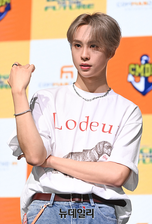 신인 보이그룹 커맨더맨(CMDM) 현하가 27일 오후 서울 마포구 신한pLay 스퀘어에서 열린 'BACK TO THE FUTURE' 데뷔 기념 쇼케이스에서 포토타임을 갖고 있다.