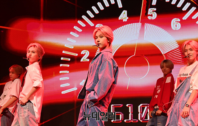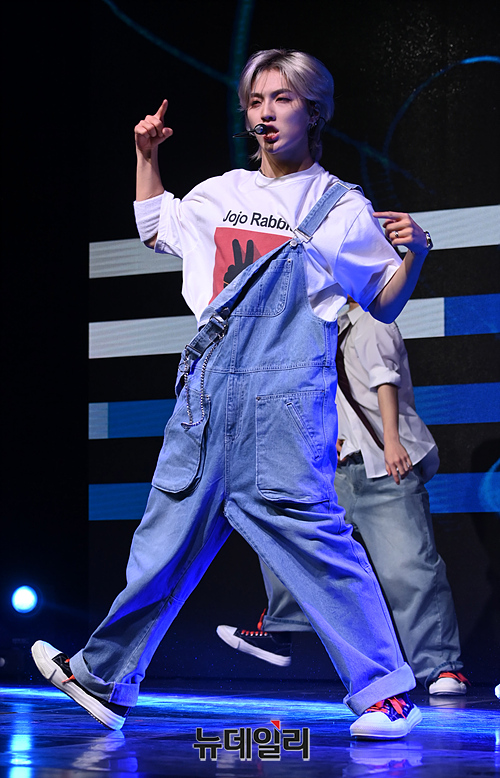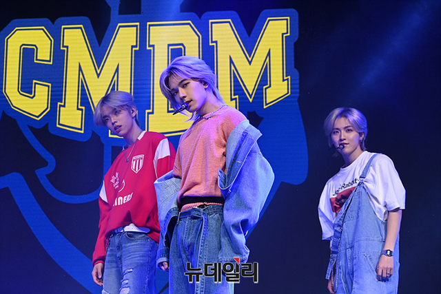 신인 보이그룹 커맨더맨(CMDM)이 27일 오후 서울 마포구 신한pLay 스퀘어에서 열린 데뷔 기념 쇼케이스에서 무대를 선보이고 있다.