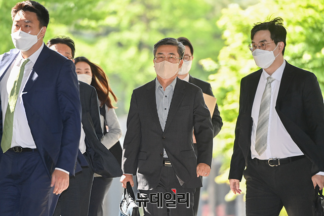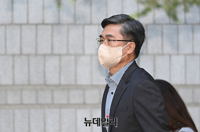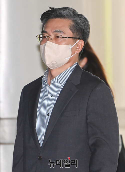 서해 공무원 피격 사건을 은폐하려 한 혐의로 기소된 서욱 전 국방부 장관이 28일 오전 서울 서초구 중앙지방법원에서 열린 공판에 출석하고 있다.