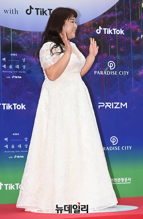 예능인 김민경이 28일 오후 인천 중구 파라다이스시티에서 열린 '제59회 백상예술대상' 레드카펫 행사에서 포즈를 취하고 있다. (인천=서성진 인턴기자)