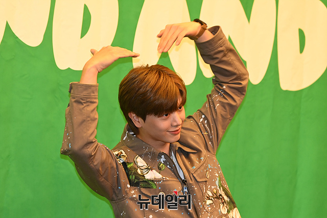 비투비(BTOB) 육성재가 2일 오후 서울 마포구 스탠포드 호텔에서 열린 12번째 미니앨범 '나의 바람(WIND AND WISH)' 발매기념 기자간담회에서 포토타임을 갖고 있다.