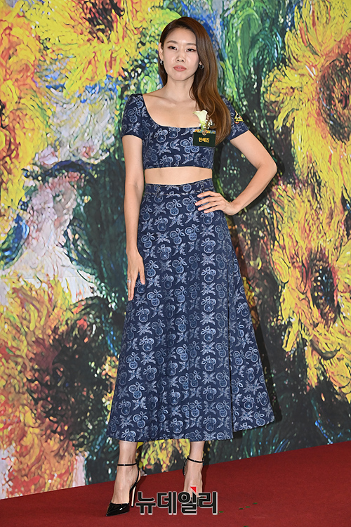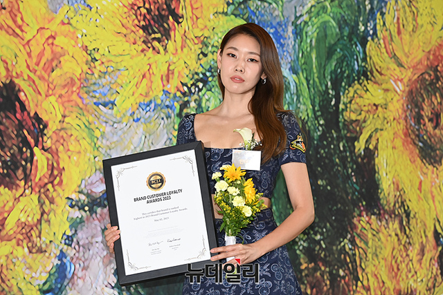 모델 한혜진이 2일 오후 서울 여의도 콘래드서울에서 열린 2023 브랜드 고객 충성도 대상에서 포토타임을 갖고 있다.