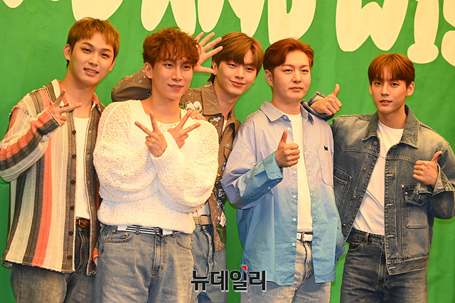 비투비(왼쪽부터 서은광, 이민혁, 이창섭, 임현식, 육성재)가 2일 오후 서울 마포구 스탠포드 호텔에서 열린 12번째 미니앨범 '나의 바람(WIND AND WISH)' 발매기념 기자간담회에서 포토타임을 갖고 있다.이번 앨범은 타이틀곡 ‘나의 바람(Wind And Wish)’을 포함해 '헤븐(Heaven)' '데이 앤 나잇(Day&Night)' '문 라이드(Moon Ride)' '유어 러브(Your Love)'까지 5곡이 수록됐다. 음원은 오후 6시 공개.