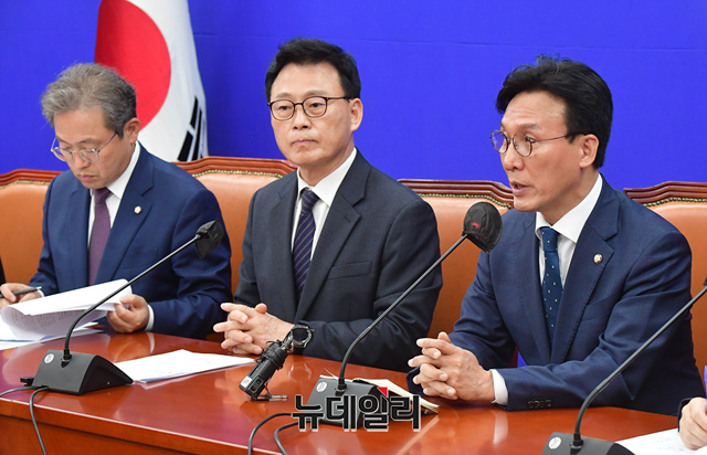 김민석 더불어민주당 정책위의장이 4일 오전 국회에서 열린 정책조정회의에서 모두발언을 하고 있다.