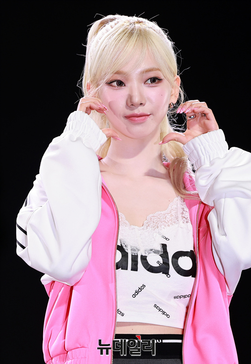 걸그룹 에스파(aespa, 카리나, 윈터, 지젤, 닝닝) 카리나가 8일 오후 서울 강남구 코엑스 오디토리움에서 열린 세 번째 미니앨범 ‘MY WORLD(마이 월드)’ 컴백 기자 간담회에서 포즈를 취하고 있다.