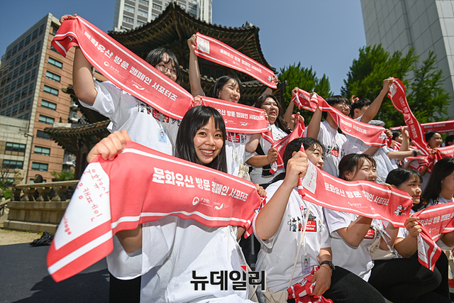 2023 문화유산방문 캠페인 공식 서포터즈 '방캠즈' 발대식이 9일 오전 서울 중구 웨스틴 조선 호텔에서 진행되고 있다. 행사에는 최응천 문화재청장과 홍보대사 배우 김민하가 참석했다.2020년 시작한 방문 캠페인은 세계적으로 주목받는 한류의 원형인 한국 문화유산의 가치를 재발견하고, 그 아름다움을 국·내외에 알리는 사업이다.세계유산과 인류 무형유산을 중심으로 76개 거점의 문화유산을 10개 주제(테마)의 방문코스로 구성하여 숙박, 교통, 여행사 등과 협업해 문화유산 관광을 본격화 한다.