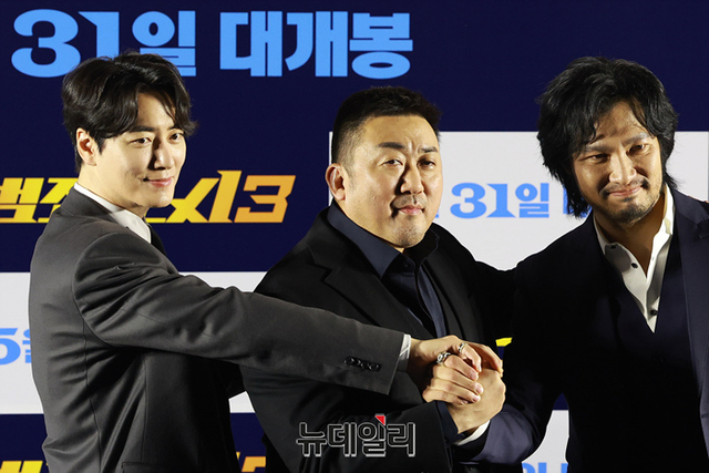 '범죄도시3'은 마석도 형사가 서울광수대로 오며 신종 마약 범죄 사건을 해결하면서 벌어지는 이야기를 담았다. 배우 마동석, 이준혁, 아오키 무네타카 등이 출연한다. 31일 극장 개봉.