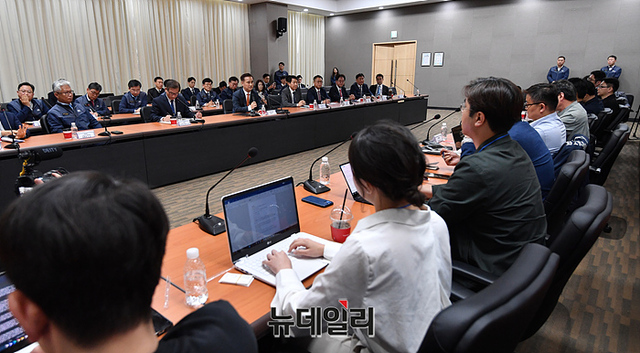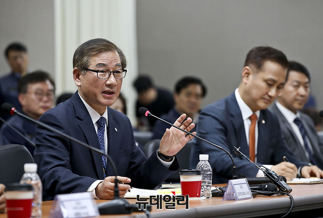 강구영 KAI 대표이사 사장이 9일 오후 경남 사천시 한국항공우주산업에서 열린 국방기자단 초청 국정과제 성과 확인 및 현장 소통을 위한 방위사업청장 방산 현장 방문에서 취재진의 질의에 답하고 있다. (사진=공동취재단)