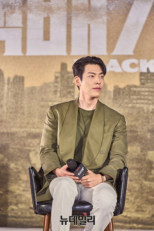 배우 김우빈이 10일 오전 서울 영등포구 프로보크 서울에서 열린 넷플릭스 드라마 '택배기사' 기자간담회에서 포토타임을 갖고 있다.