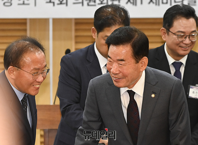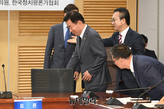 김진표 국회의장이 12일 오전 국회 의원회관에서 열린 한국정치평론가협회 출범식 및 기념 세미나에 참석하고 있다.
