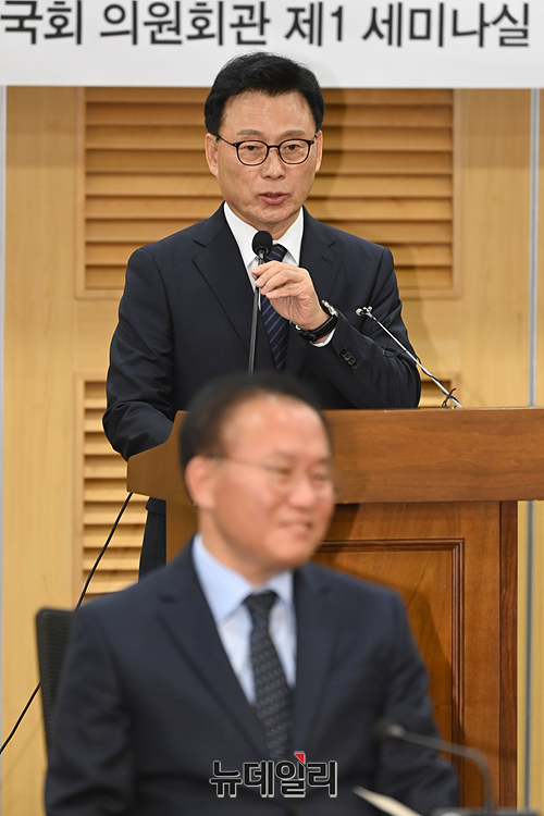 박광온 더불어민주당 원내대표가 12일 오전 국회 의원회관에서 열린 한국정치평론가 협회 출범식 및 기념 세미나에서 축사를 하고 있다.