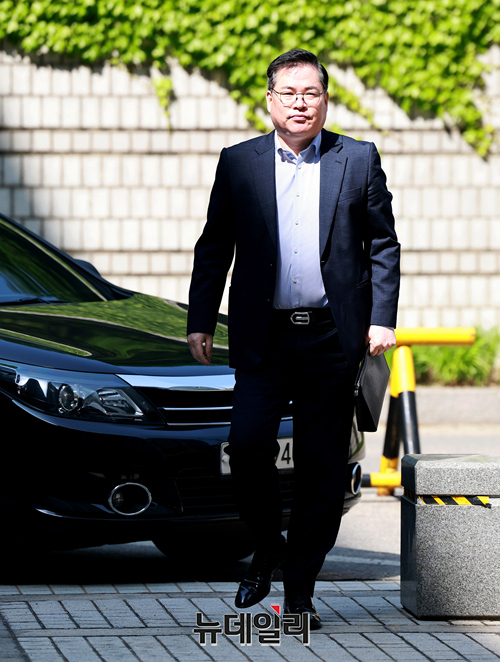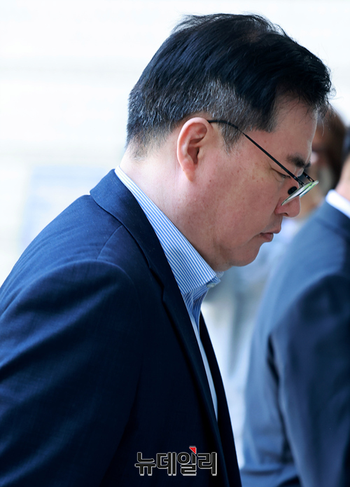 유동규 전 성남도시개발공사 기획본부장이 15일 오전 서울 서초구 중앙지법에서 열린 대장동 개발 사업 로비·특혜 의혹 관련 95차 공판에 출석하고 있다.