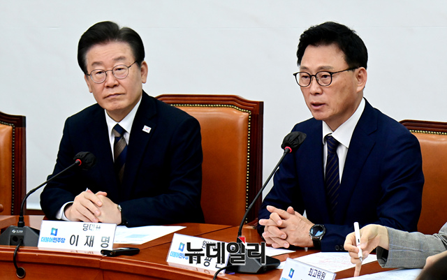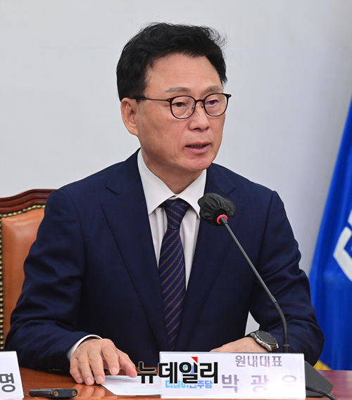 박광온 더불어민주당 원내대표가 15일 오전 국회에서 열린 최고위원회의에 참석해 모두발언을 하고 있다.