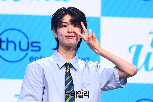 신인 보이그룹 더윈드(The Wind) 장현준이 15일 오후 서울 마포구 신한pLay 스퀘어에서 열린 데뷔 앨범 '비기닝 : 더 윈드 페이지(Beginning : The Wind Page)' 발매 기념 쇼케이스에서 포토타임을 갖고 있다.