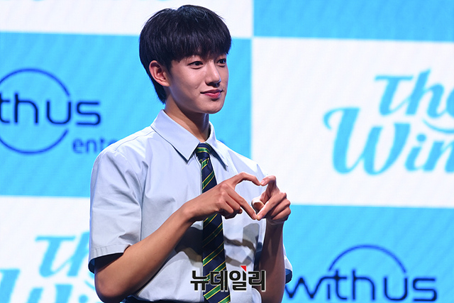 신인 보이그룹 더윈드(The Wind) 타나톤이 15일 오후 서울 마포구 신한pLay 스퀘어에서 열린 데뷔 앨범 '비기닝 : 더 윈드 페이지(Beginning : The Wind Page)' 발매 기념 쇼케이스에서 포토타임을 갖고 있다.