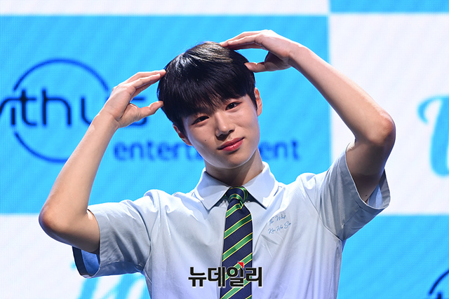 신인 보이그룹 더윈드(The Wind) 김희수가 15일 오후 서울 마포구 신한pLay 스퀘어에서 열린 데뷔 앨범 '비기닝 : 더 윈드 페이지(Beginning : The Wind Page)' 발매 기념 쇼케이스에서 포토타임을 갖고 있다.