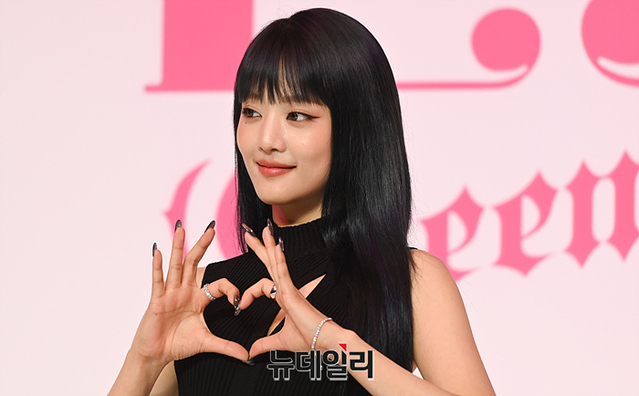 걸그룹 (여자)아이들((G)I-DLE) 민니가 15일 오후 서울 강남구 조선팰리스에서 열린 여섯 번째 미니 앨범 'I feel' 제작발표회에서 포토타임을 갖고 있다.