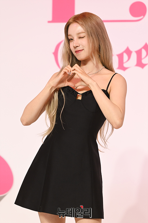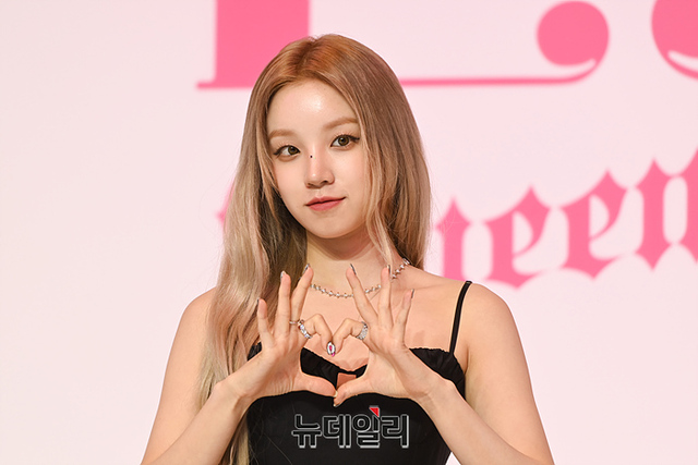걸그룹 (여자)아이들((G)I-DLE) 우기가 15일 오후 서울 강남구 조선팰리스에서 열린 여섯 번째 미니 앨범 'I feel' 제작발표회에서 포토타임을 갖고 있다.