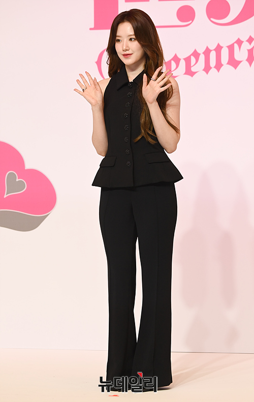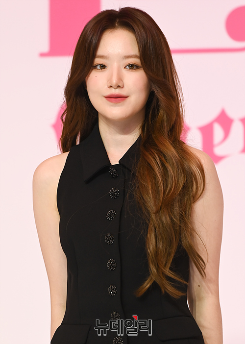 걸그룹 (여자)아이들((G)I-DLE) 슈화가 15일 오후 서울 강남구 조선팰리스에서 열린 여섯 번째 미니 앨범 'I feel' 제작발표회에서 포토타임을 갖고 있다.