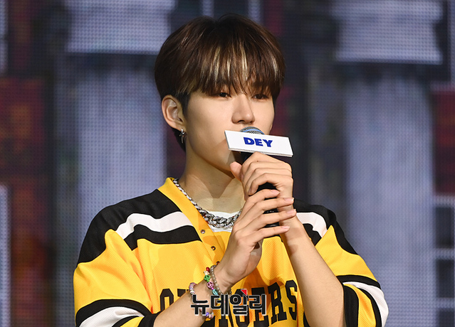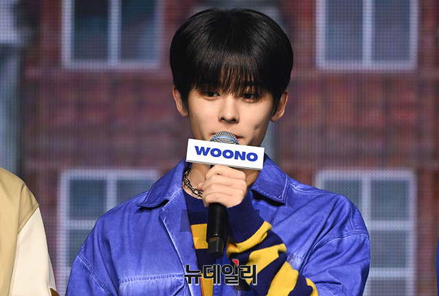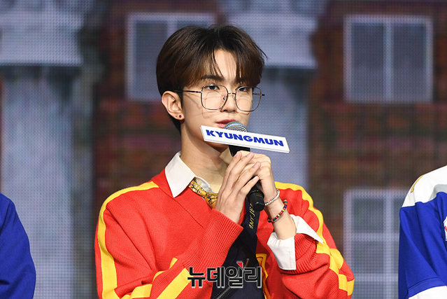 그룹 유나이트(YOUNITE)가 17일 오후 서울 마포구 서강대학교에서 열린 '빛 : BIT Part.1' 발매 기념 쇼케이스에서 인사말을 하고 있다.