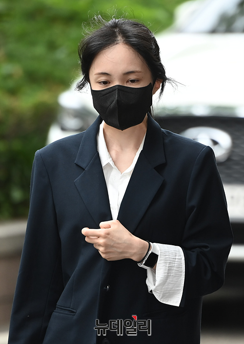 필로폰 투약 혐의를 받고 있는 방송인 서민재가 18일 오전 서울 마포구 서울서부지법에서 열린 구속 전 피의자 심문(영장실질심사)을 받기 위해 출석하고 있다.