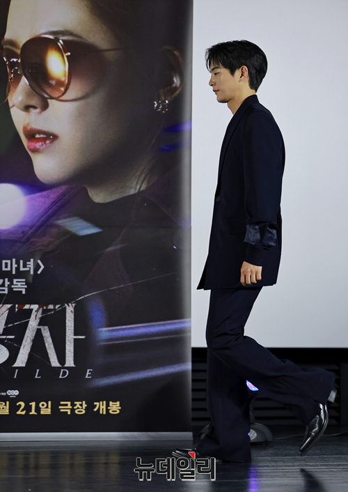 신인배우 강태주가 22일 오전 서울 광진구 롯데시네마 건대입구에서 열린 영화 '귀공자(연출 박훈정)' 제작발표회에서 포토타임을 갖고 있다.