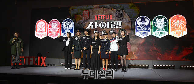 각 참가자팀 리더들(스턴트 김경애, 군인 김봄은, 소방 김현아, 경찰 김혜리, 운동 김희정, 경호이수련)이 24일 오전 서울 마포구 호텔 나루 서울 엠갤러리에서 열린 넷플릭스 시리즈 '사이렌: 불의 섬(연출 이은경)' 제작발표회에서 포토타임을 갖고 있다.넷플릭스 시리즈 '사이렌: 불의 섬'은 최강의 전투력과 치밀한 전략을 모두 갖춘 여성 24인이 6개의 직업군별로 팀을 이뤄 미지의 섬에서 치열하게 부딪히는 생존 전투 서바이벌 예능이다. 5월 30일 첫 공개.