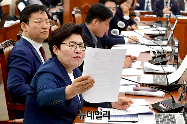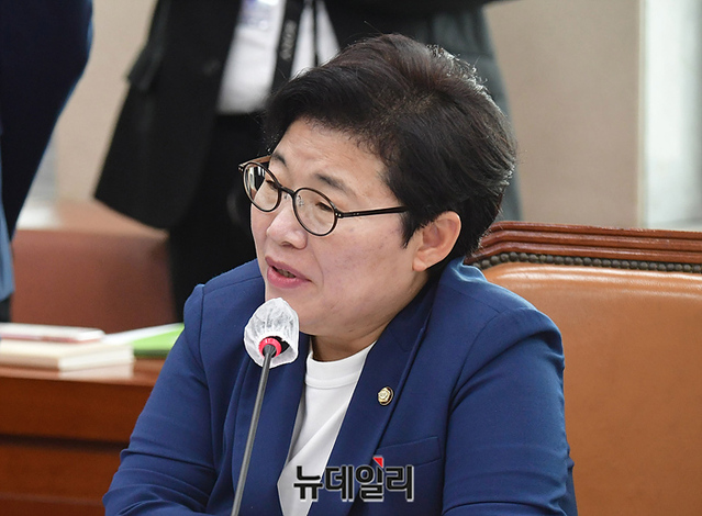 환경노동위원회 여당 간사인 임이자 국민의힘 의원이 24일 국회에서 열린 환경노동위원회 전체회의에서 의사진행발언을 하고 있다.