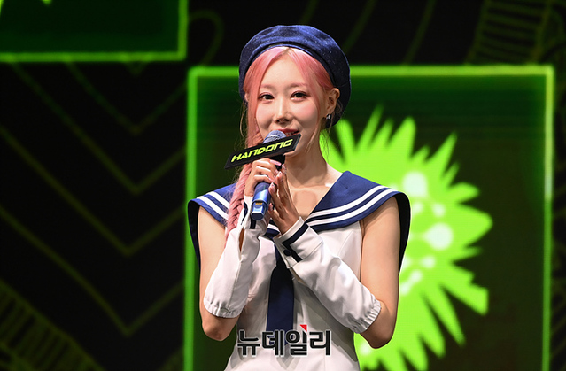 걸그룹 드림캐쳐(DREAMCATCHER)가 24일 오후 서울 광진구 건국대학교 서울캠퍼스에서 열린 여덟 번째 미니앨범 '아포칼립스 : 프롬 어스(Apocalypse : From us)' 발매 기념 쇼케이스에서 인사를 하고 있다.이번 앨범에는 타이틀곡 '본보야지(BONVOYAGE)'를 포함 '인트로: 프롬어스(Intro: From us)' '데미안(DEMIAN)' '프러포즈(Propose)' '투 유(To. You)'까지 총 다섯 곡이 수록됐다. 음원은 오후 6시 공개 된다.