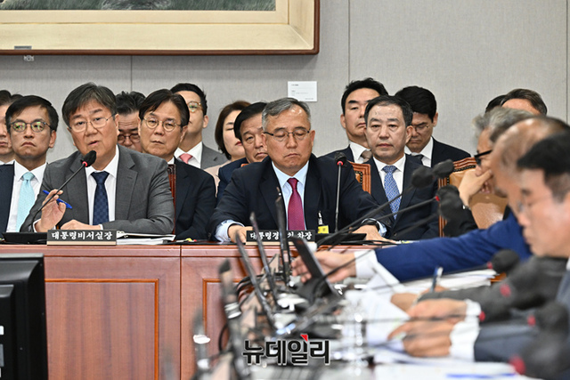 김대기 대통령 비서실장이 24일 오후 국회에서 열린 운영위원회 전체회의에서 의원들의 질문에 답하고 있다.
