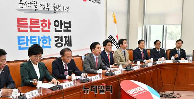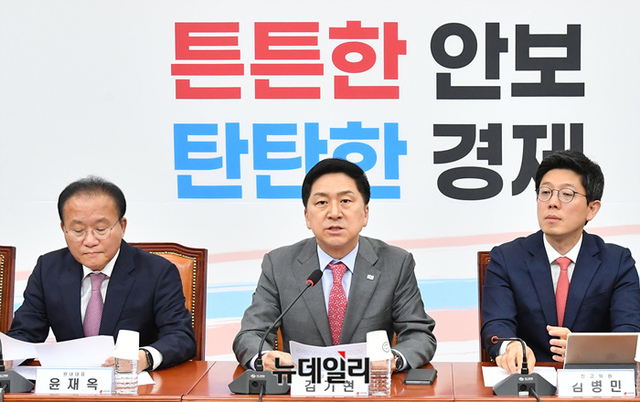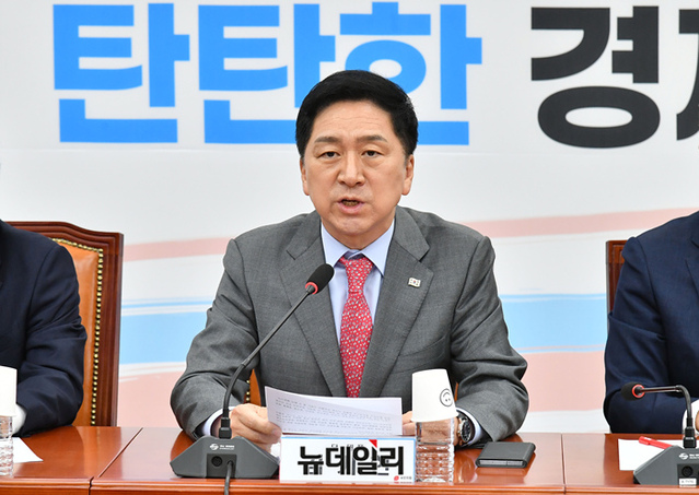 김기현 국민의힘 대표가 25일 오전 국회에서 열린 최고위원회의에 참석해 모두발언을 하고 있다.