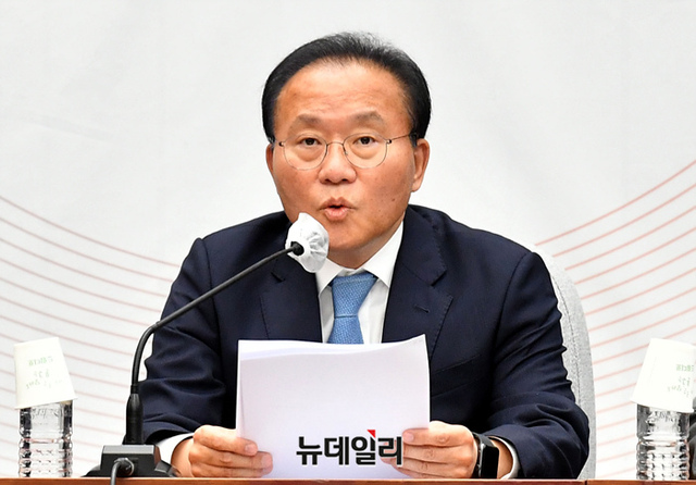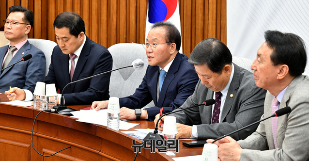 윤재옥 국민의힘 원내대표가 26일 오전 국회에서 열린 원내대책회의에서 모두발언을 하고 있다.