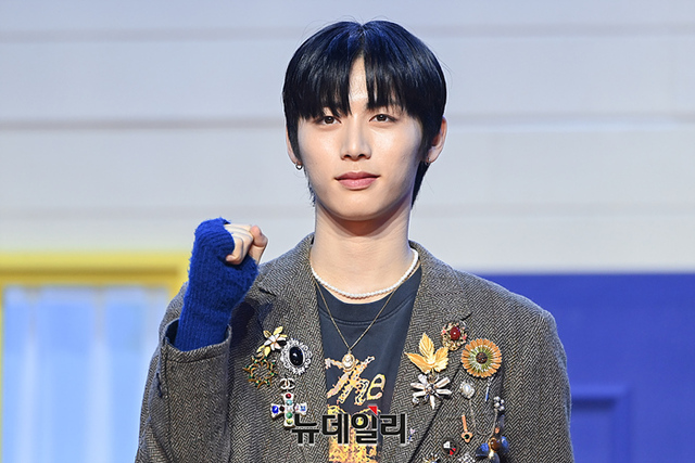 보이그룹 보이넥스트도어(BOYNEXTDOOR) 태산이 30일 오후 서울 용산구 블루스퀘어에서 열린 데뷔 싱글앨범 '후!(WHO!)' 발매기념 쇼케이스에서 포토타임을 갖고 있다.
