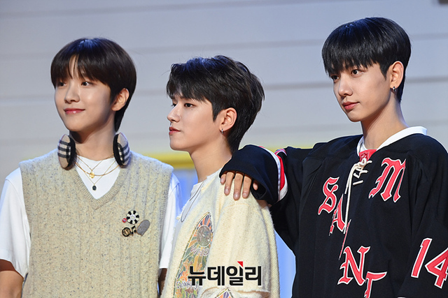 신인그룹 보이넥스트도어(왼쪽부터 운학, 리우, 명재현, 성호, 이한, 태산)가 30일 오후 서울 용산구 블루스퀘어에서 열린 데뷔 싱글앨범 '후!(WHO!)' 발매기념 쇼케이스에서 포토타임을 갖고 있다.