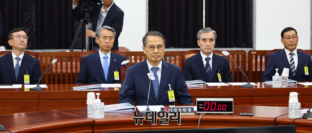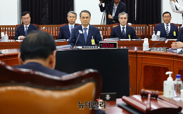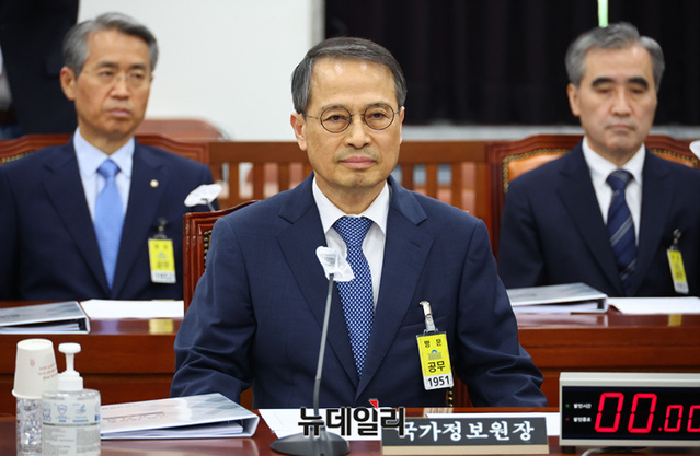 김규현 국가정보원장이 31일 오후 국회에서 열린 정보위원회 전체회의에 출석해 회의를 기다리고 있다.