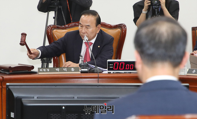 박덕흠 국회 정보위원장이 31일 오후 국회에서 열린 정보위원회 전체회의에서 의사봉을 두드리고 있다.