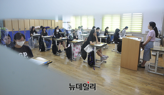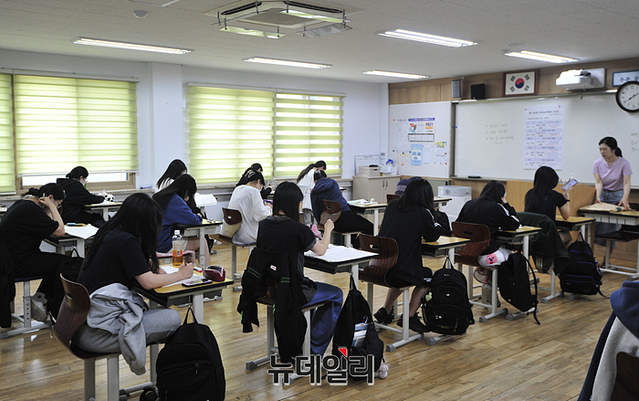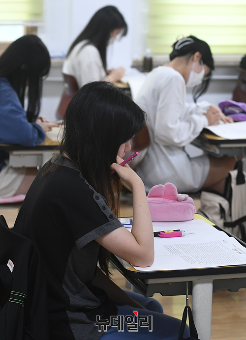 2024학년도 대학수학능력시험을 5개월 앞둔 1일 오전 서울 영등포구 여의도여자고등학교에서 수험생들이 6월 모의평가 준비를 하고 있다. (사진=공동취재단)