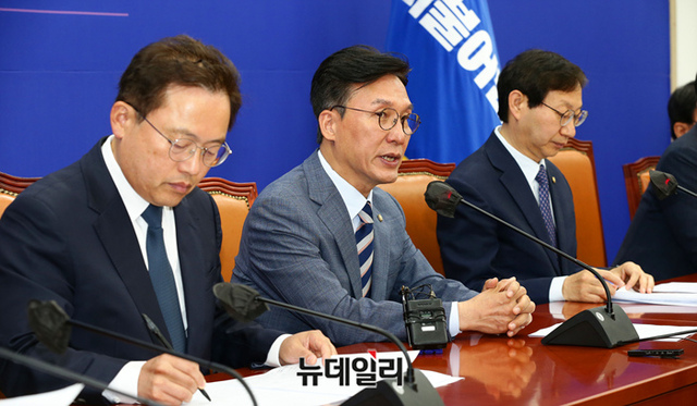 김민석 더불어민주당 정책위의장이 1일 오전 국회에서 열린 정책조정회의에 참석해 모두발언을 하고 있다.