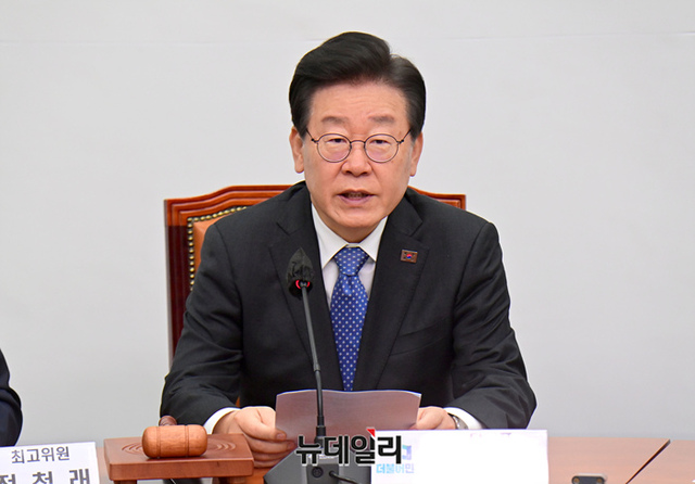 이재명 더불어민주당 대표가 2일 오전 국회에서 열린 최고위원회의에서 모두발언을 하고 있다.