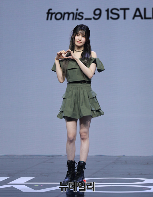 프로미스나인 송하영이 5일 오후 서울 광진구 예스24라이브홀에서 열린 정규 1집 'Unlock My World(언락 마이 월드)' 쇼케이스에서 포토타임을 갖고 있다.