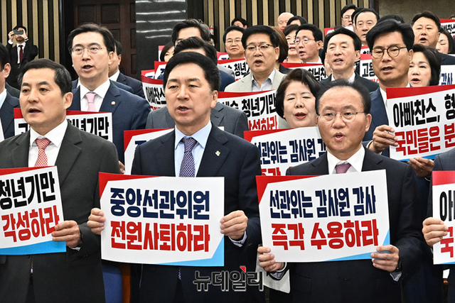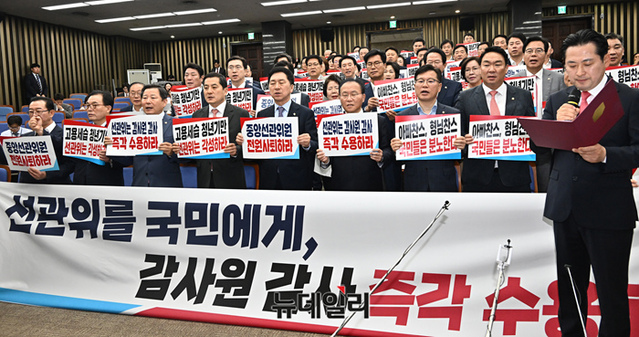 [포토] 국민의힘 "중앙선관위는 감사원 감사 수용하라"