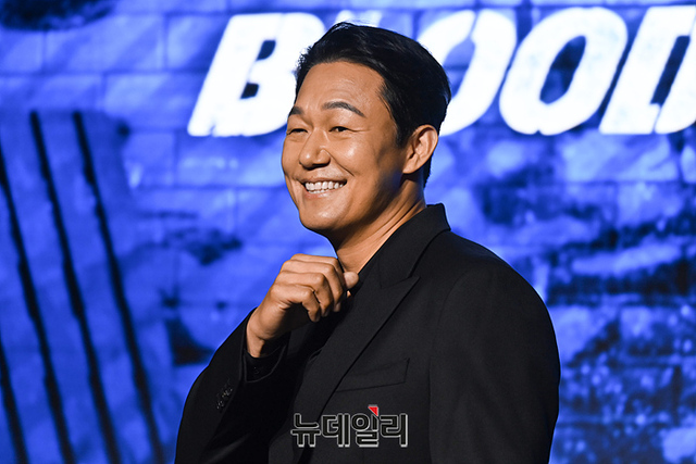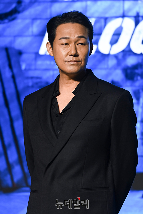 배우 박성웅이 7일 오전 서울 마포구 호텔 나루 서울 엠갤러리에서 열린 넷플릭스 시리즈 '사냥개들(연출 김주환)' 제작발표회에서 포토타임을 갖고 있다.
