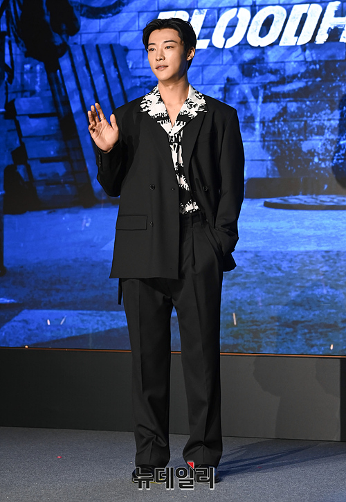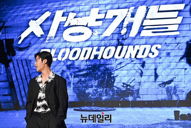 배우 우도환이 7일 오전 서울 마포구 호텔 나루 서울 엠갤러리에서 열린 넷플릭스 시리즈 '사냥개들(연출 김주환)' 제작발표회에서 포토타임을 갖고 있다.
