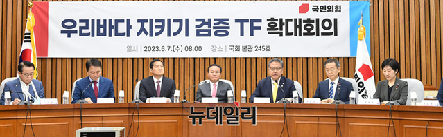 박대출 국민의힘 정책위의장이 7일 오전 국회에서 열린 '우리바다 지키기 검증 TF 확대회의'에 참석해 모두발언을 하고 있다.