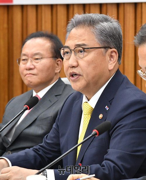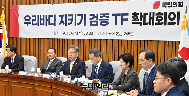 박진 외교부 장관이 7일 오전 국회에서 열린 '우리바다 지키기 검증 TF 확대회의'에 참석해 모두발언을 하고 있다.